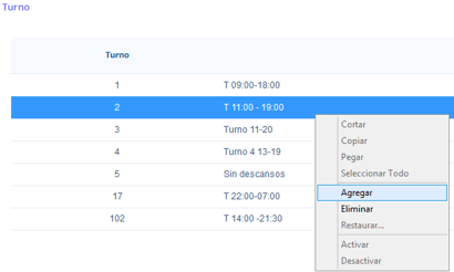 Observaras la lista de los turnos configurados para la compañía.