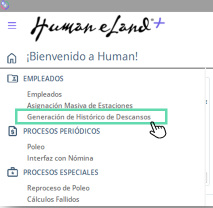 - Ubica la sección de empleados y haz clic en la opción Generación de histórico de descansos.
