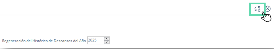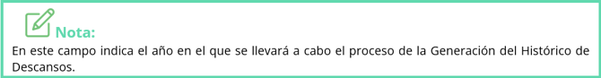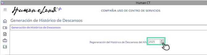 - A continuación, deberás seleccionar el Año para la Generación del Histórico de Descansos haciendo clic en las flechas del recuadro.