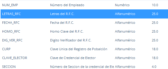 Nota: Los campos no se muestran consecutivos, deberás buscarlos y seleccionarlos.