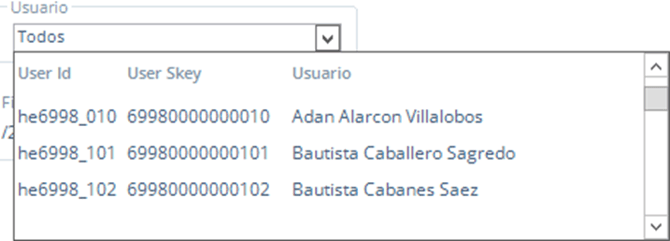 Usuario: Haz clic en este campo para seleccionar únicamente al usuario que realizó los movimientos.