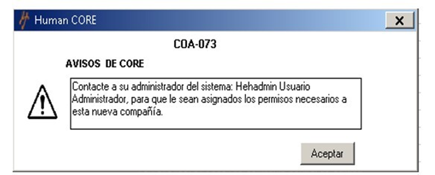 Este mensaje se genera cuando se crea una nueva compañía con un usuario hadmin y no se han dado permisos a ningún usuario para poder ingresar.