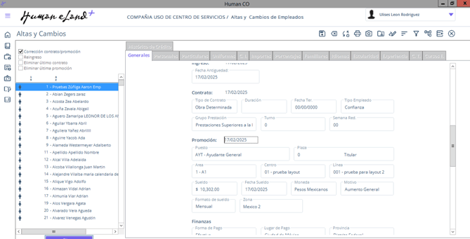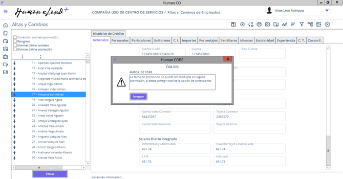 Si desea cambiar solo la Fecha Promoción deberá ir a la ruta: Human Core/ Empleados / Altas y Cambios
