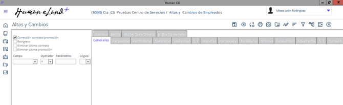 Ruta: Human Core / Empleados / Altas Cambios.