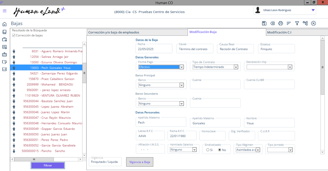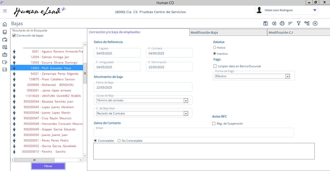 - Realiza la búsqueda del empleado al que deseas aplicar la corrección, haz clic en el botón buscar.
