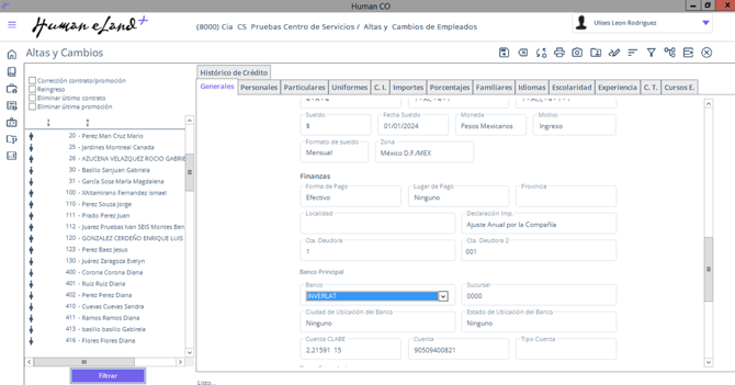 Ruta: Human Core / Empleados / Altas y Cambios
