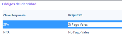 Ejemplo: Se crear el código de identidad Pago Vales de Despensa.