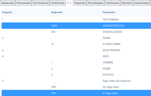 Los Códigos de Identidad se definen en la opción Altas y Cambios por cada Empleados, pestaña C.I.