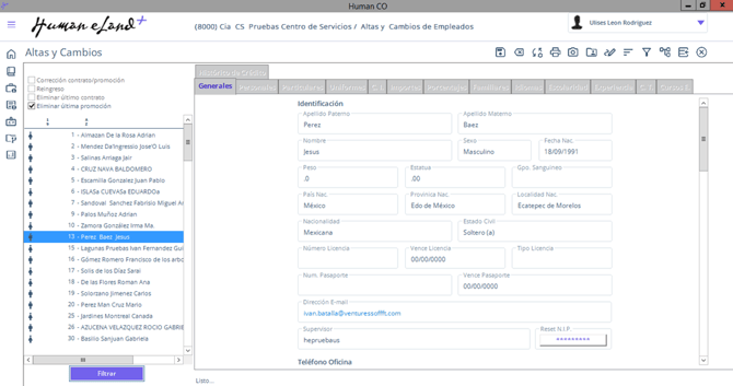 Ruta: Huma Core/Empleados/ Altas Cambios/