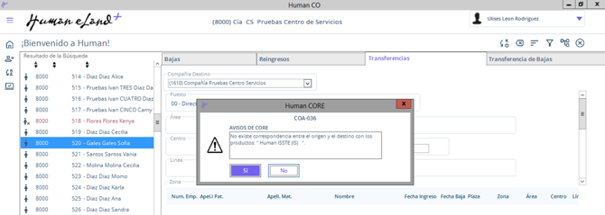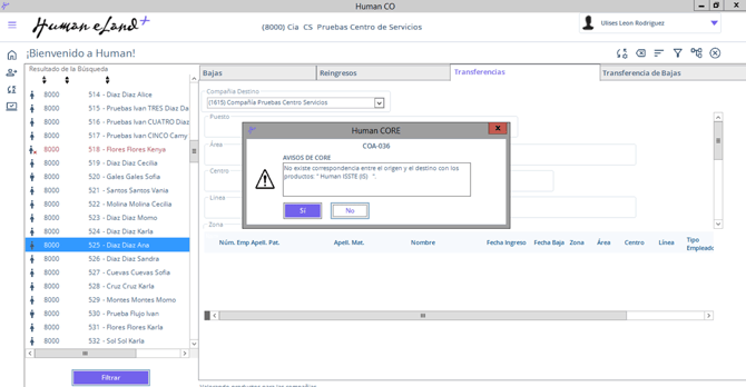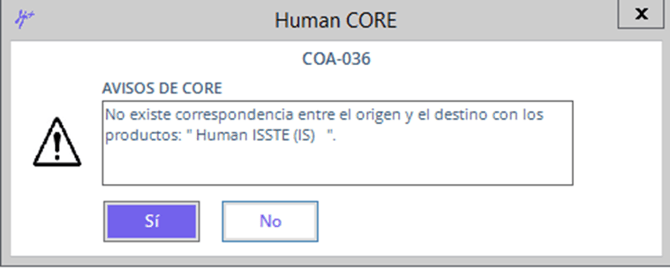 La alerta COA-036 se genera al realizar una transferencia de empleados de Human Core.