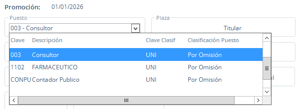 Al realizar una promoción por puesto / plaza a un empleado, se genera el siguiente mensaje.