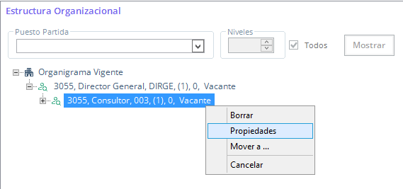 5. Busca el puesto / plaza, haz clic derecho y selecciona la opción Propiedades.