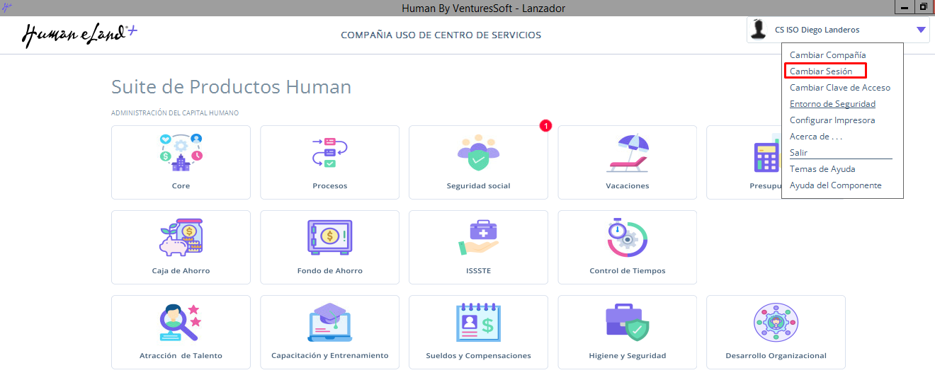 Ruta: Human Lanzador/ Flecha abajo superior Derecha / cambio de sesión / Ingresar con usuario hseg