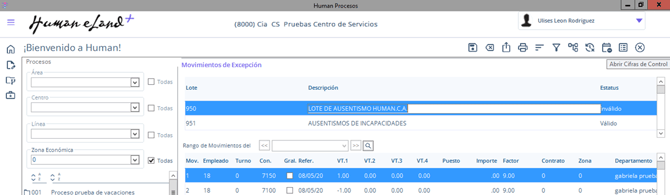 Ruta: Human procesos/Incidencias/ Movimientos de Excepción