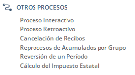 Ruta: Human Procesos / Procesos Especiales / Otros Procesos / Reproceso de Acumulados por Grupo.