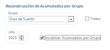 1. Elegir el Grupo al cual quiera reconstruir acumulados o en el cual se realizó movimiento o bien, selecciona la opción Todos, para reconstruir todos los grupos.