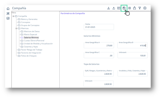 - Podrás validar el nuevo registro con los datos actualizados en la matriz de salarios mínimos.