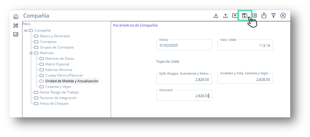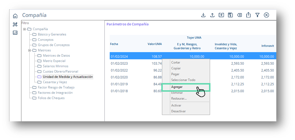 En esta guía se describe el proceso para actualizar los valores del Salario Mínimo General Vigente, de la Unidad de Medida y Actualización (UMA) y de Unidad de Medida Infonavit (UMI), los cuales se utilizarán para generar los cálculos de Salarios Diarios Integrados, Cuotas IMSS, Créditos Infonavit y demás conceptos que consideren estos valores para su cálculo.