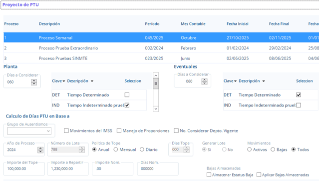 Este reporte genera días e importes que van a servir como base para el cálculo de la PTU.