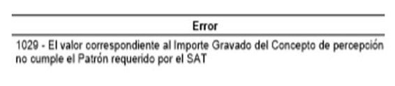 El error 1029 de timbrado se genera cuando un concepto de tipo percepción, tiene signo negativo en su importe.