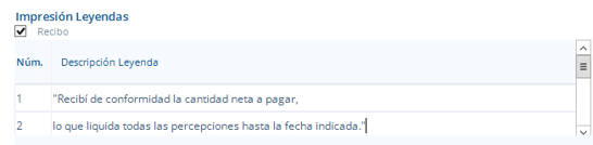 Agregar leyendas personalizadas en Recibos Electrónico.