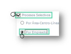 6. Selecciona las casillas Procesos Selectivos, y posteriormente la opción Por Empleado.