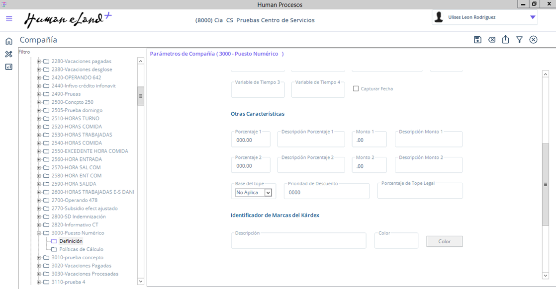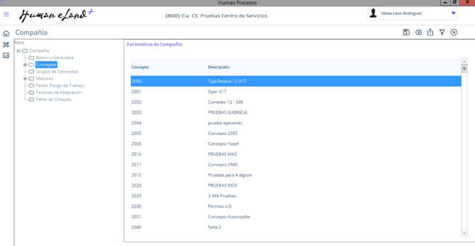 Ruta: Human Procesos / Flecha abajo parte Superior Derecho / PARÁMETROS / Compañía / Conceptos.