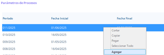 - Número Periodo: Se sugiere iniciar con el registro 001, para conservar un consecutivo.