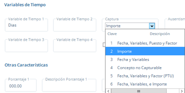 3. En la sección Variables de Tiempo, ubica el campo Captura y define la opción Importe.