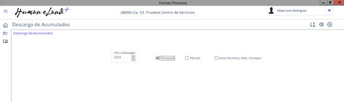 - Human en automático arrojara el nombre del Archivo como “Reporte Acumulados” seguido de la opción mensual o por periodo seguido del año elegido. Haz clic en el botón.