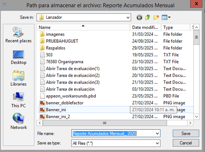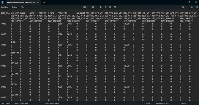 - Deberás ingresar a la ruta que seleccionaste en el punto anterior, en la ruta se encontrara el archivo en formato .txt con los acumulados correspondientes.