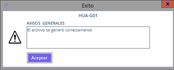 - Human arrojara un mensaje de validación “El archivo se generó correctamente”, haz clic en botón aceptar.