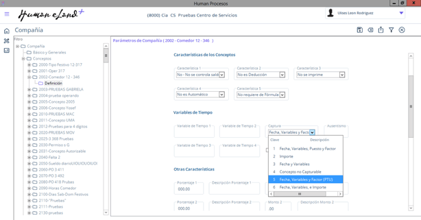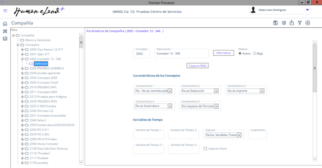RUTA: Human Procesos / Flecha abajo parte superior derecha / Parámetros / Compañía / Conceptos.