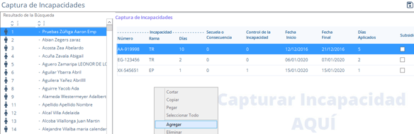 2. Haz clic derecho Agregar en la sección Capturar Incapacidad AQUÍ.