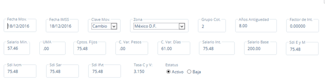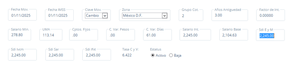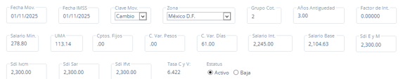 Para nuestro ejemplo actualizamos el dato del salario diario integrados.