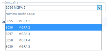 9. En el campo Compañía, te enlistara las compañías, elige la compañía que vas a configurar.