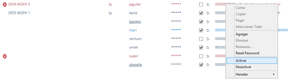 8. Selecciona el usuario para desbloquear, haz clic derecho y selecciona la opción Activar.