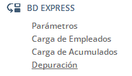 6. Ingresa al menú Carga Inicial / BD Express / Depuración.