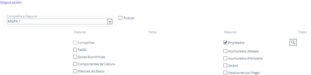 7. En el campo Compañía a Depurar, elige la compañía a la cual pertenece el empleado que se eliminara.
