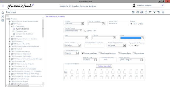 RUTA: Human Procesos / Flecha abajo superior derecha / Parámetros / Procesos / Proceso