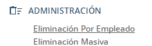 Ruta: Human Vacaciones / En la parte superior derecha se muestra el nombre de usuario, haz clic / Administración / Eliminación Por Empleado.
