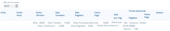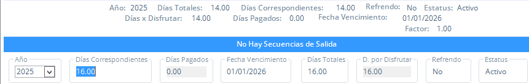 Nota: El campo Días por Disfrutar se actualiza en automático ejecutando los pasos anteriores.