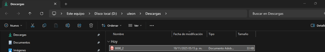 - Se solicita una ruta para guardar el documento, el cual se guarda en formato PDF.